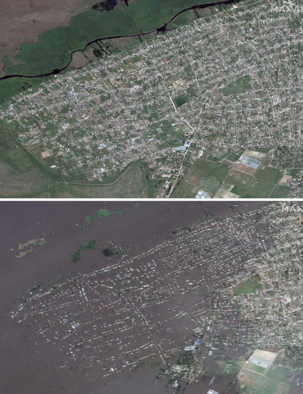 12.15 Maxar публикует новые спутниковые снимки из Херсонской области после затопления.