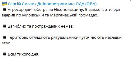 07.35 Ночью РФ дважды обстреляла Никопольский район Днепропетровской области.