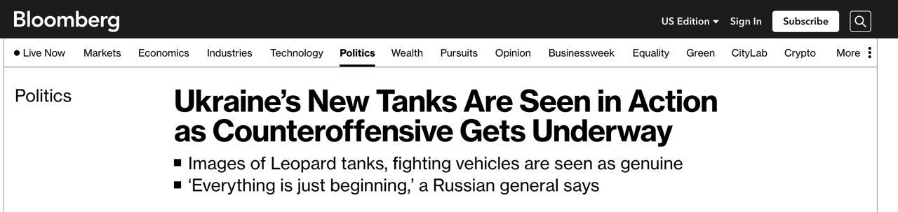 "Украинское контрнаступление началось. С 4 июня украинские войска ведут наступление вдоль линии соприкосновения. Это направлено на то, чтобы удержать российские силы на месте и выявить слабые места", — заявил старший научный сотрудник по наземным боевым действиям в лондонском Международном институте стратегических исследований Бен Барри.