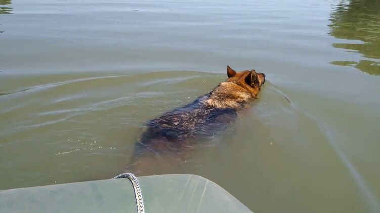 По данным пабликов, собаку смыло в Днепр вблизи Херсона, она доплыла до села Григоровка Лиманского района Одесской области.