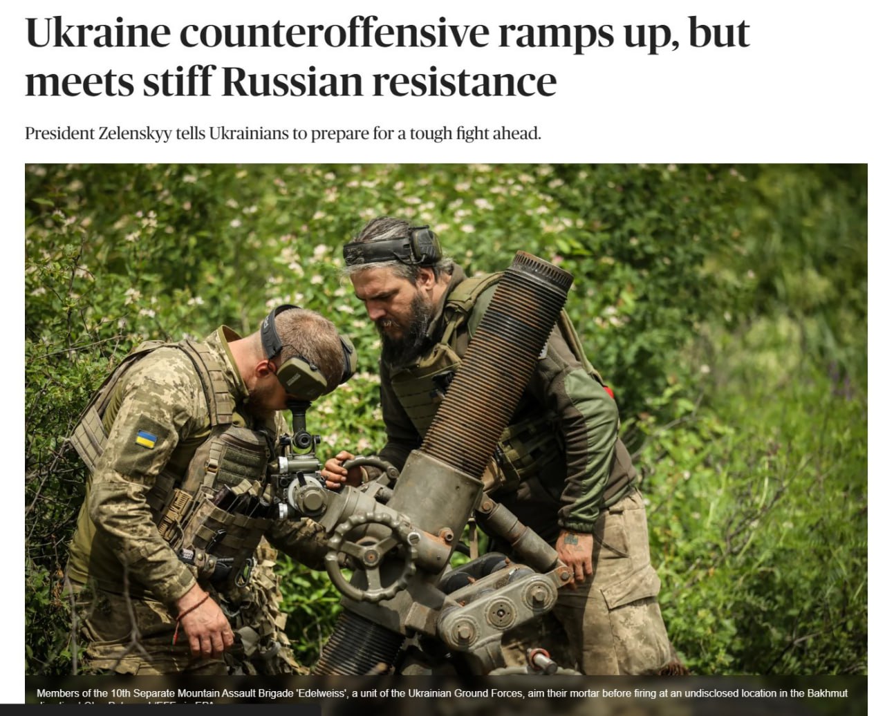 Также он говорит, что "сейчас у русских на передовой очень хорошая и отлично оснащенная армия, поэтому контрнаступление будет очень сложной задачей".