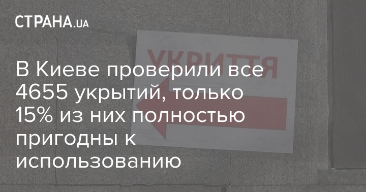 В Киеве проверили все 4655 укрытий, только 15% из них пригодны к использованию без существенных замечаний.