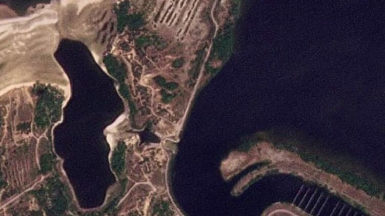 Появились спутниковые снимки, показывающие уровень обмеления притока в охлаждающий пруд Запорожской АЭС.