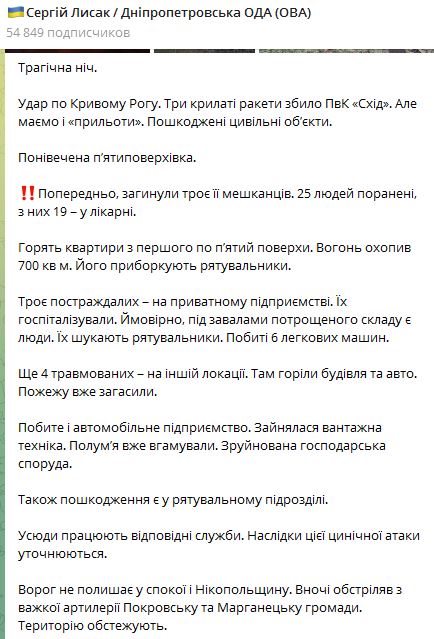Ночью 13 июня РФ ударила по Кривому Рогу. По предварительным данным, погибли трое жителей пятиэтажки.