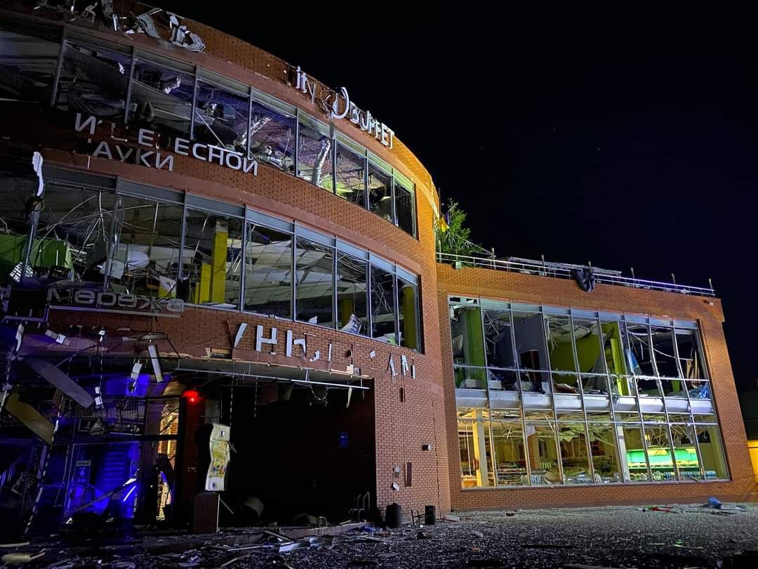 В результате воздушной атаки РФ взрывной волной повреждены бизнесцентр, учебное заведение, жилищный комплекс, заведения питания и магазины в центре города.