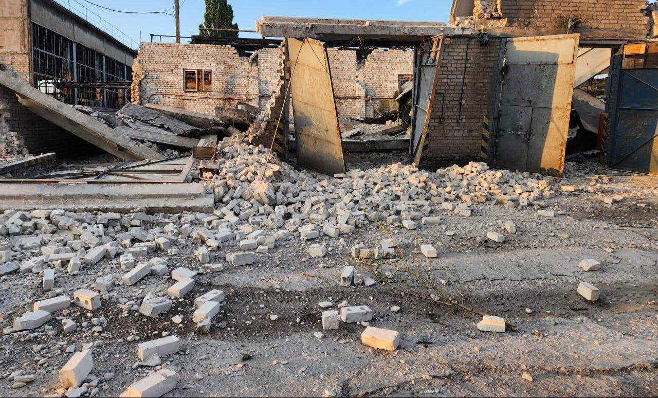 На предприятиях возникли пожары. Имеются существенные разрушения производственных сооружений. Повреждены газопроводы. Уничтожены шиномонтаж и автобус.