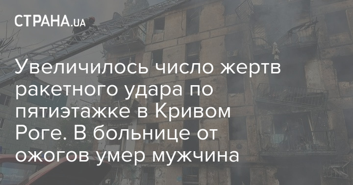 Увеличилось число жертв ракетного удара по пятиэтажке в Кривом Роге. В больнице от ожогов умер мужчина