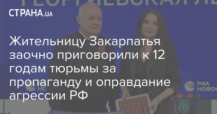 Жительница Закарпатья приговорена к 12 годам заключения с конфискацией имущества за российскую пропаганду и оправдание российской агрессии.