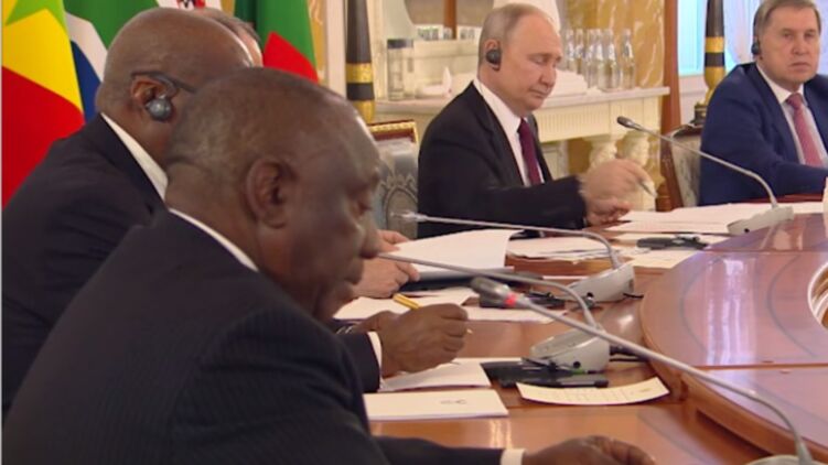 Владимир Путин на встрече с африканской делегацией. Скриншот видео