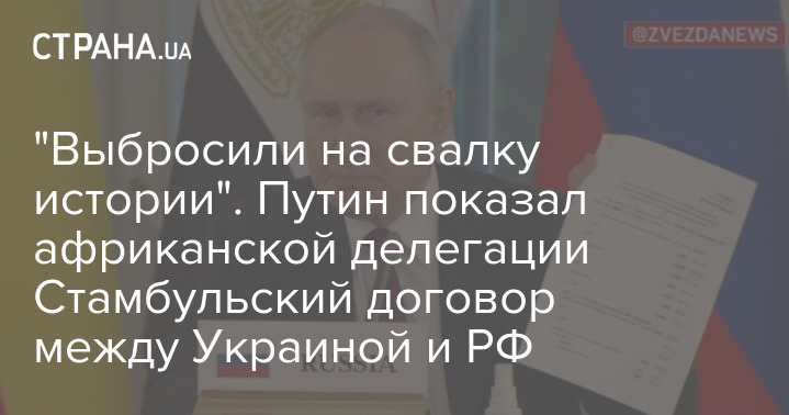 Президент РФ Владимир Путин на встрече с африканскими лидерами показал договор, парафированный Украиной и Россией на переговорах в Стамбуле в конце марта 2022 года.