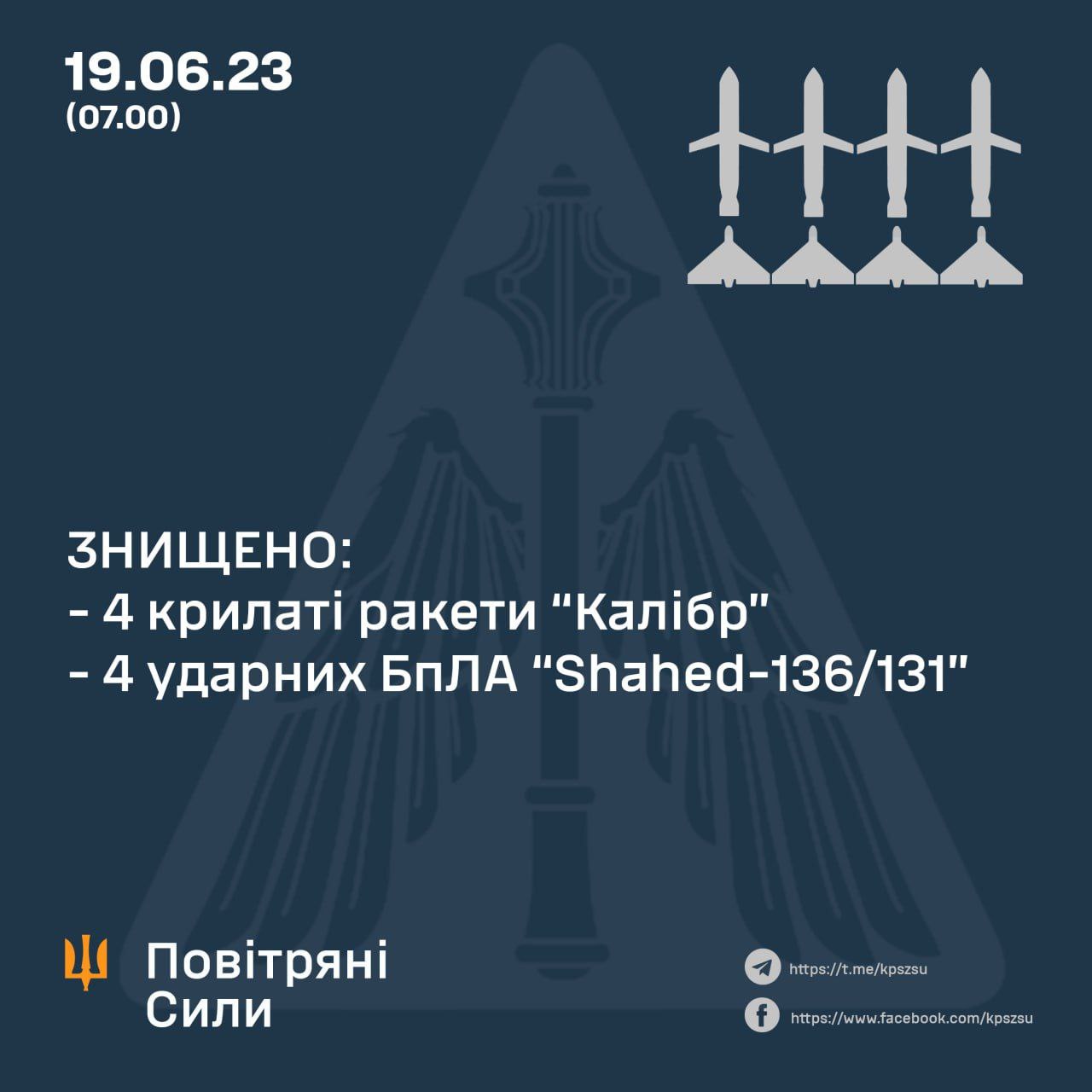 08.35 За ночь ПВО сбила все четыре "Калибра", запущенные по Украине, а также четыре дронов-камикадзе.