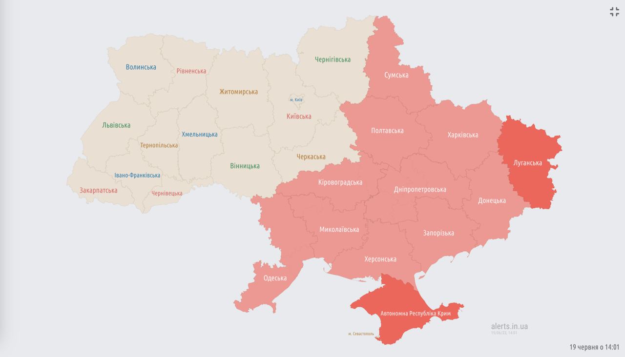 14.05 Восточную половину Украины охватила тревога.