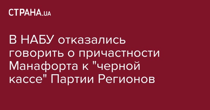 Как сообщала "Страна", НАБУ может вызвать на допрос экс-политтехнолога Януковича Манафорта. В сентябре Национальное антикоррупционное бюро не исключало вероятность допроса американского политтехнолога из штаба Дональда Трампа, который раньше продвигал Виктора Януковича и может быть замешан в деле "черной бухгалтерии" Партии Регионов.