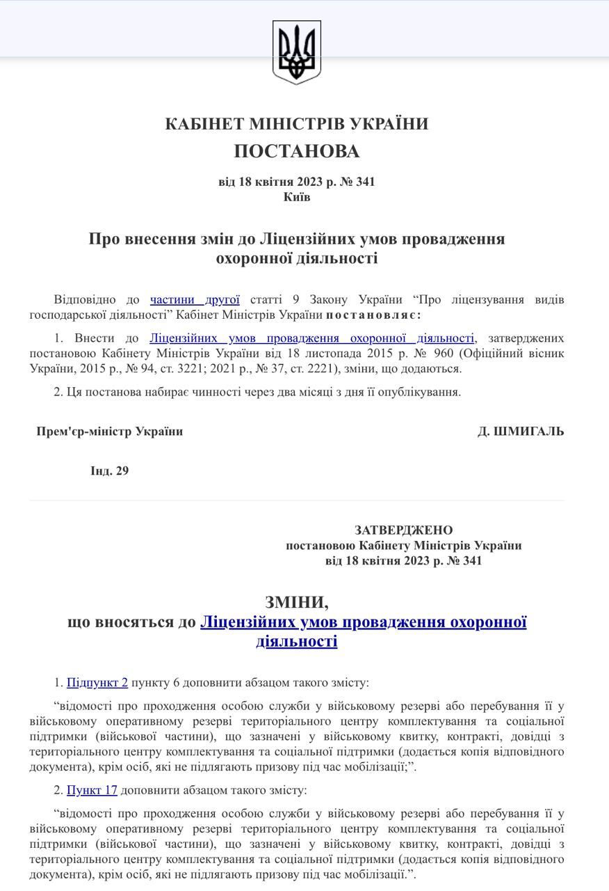 Подлежащие мобилизации украинцы больше не могут работать охранниками. Соответствующее постановление Кабмина от 18 апреля вступило в силу с 21 июня.