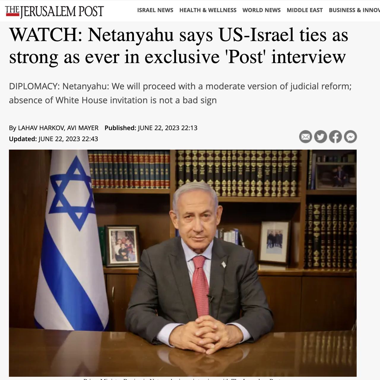 10.50 Израиль не будет передавать Украине оружие, так как оно может попасть в Иран и быть использовано против самого Израиля, заявил премьер-министр Нетаньяху в интервью The Jerusalem Post.