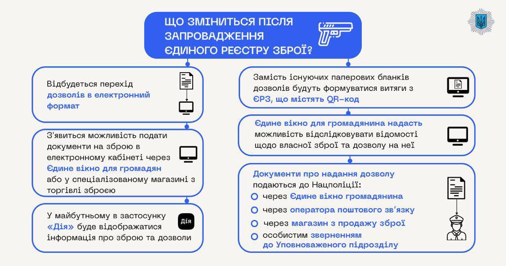 "Граждане смогут легко получать информацию о своем зарегистрированном оружии. Кроме того, благодаря диджитализации услуг в сфере обращения оружия, процедура получения разрешений будет упрощена", - заявил ранее глава МВД Игорь Клименко.