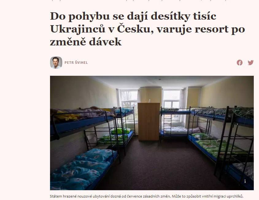 В связи с этим есть риски нехватки жилья и массового возвращения беженцев в Украину. В Минтруда Чехии предупреждают о возможной внутренней миграции и вероятности того, что десятки тысяч людей могут лишиться временного жилья.