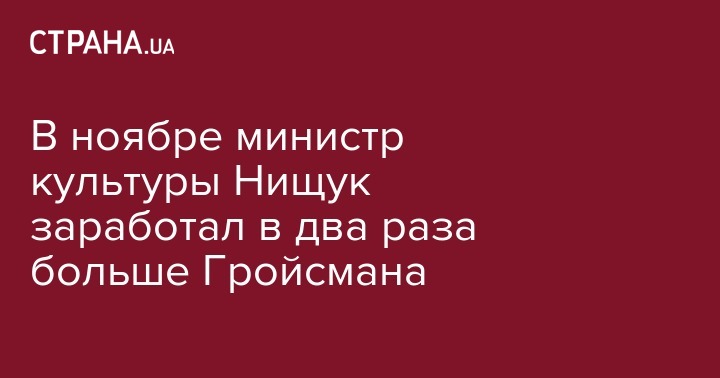 В ноябре министр культуры Нищук заработал в два раза больше Гройсмана