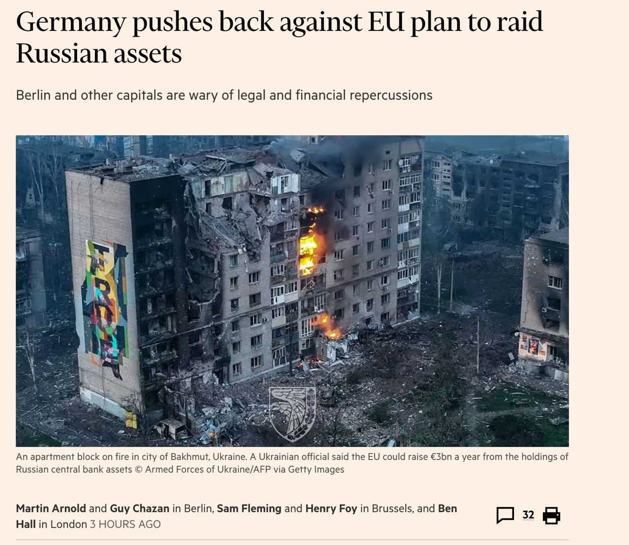 Германия высказалась против плана ЕС использовать замороженные активы центробанка РФ для восстановления Украины.