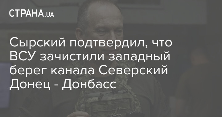 Сырский подтвердил, что ВСУ зачистили западный берег канала Северский Донец - Донбасс