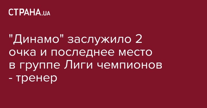 Тренер киевского "Динамо" Сергей Ребров заявил, что его клуб своей игрой заслужил тот результат, который достигнут в Лиге чемпионов - ни одной победы, 2 очка и последнее место в группе. Его слова передает пресс-служба клуба.