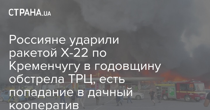 Во время сегодняшней воздушной тревоги российские оккупанты выпустили ракету Х-22 в направлении Кременчуга. Этот обстрел произошел в годовщину удара по ТЦ "Амстор", в результате которого погибли 19 человек.