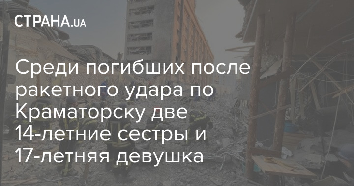 В Краматорске среди погибших после ракетного удара - трое несовершеннолетних девушек, одна 17 лет и две сестры 14 лет.