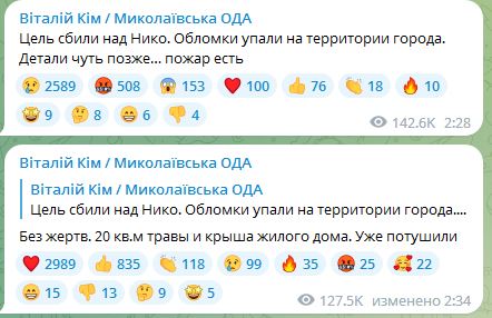 07.20 Также ночью РФ атаковала Николаев. Цели были сбиты. В результате загорелась трава и крыша жилого дома. Обошлось без жертв.