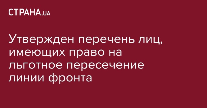 Официально утвержден список категорий лиц, которые имеют право на пересечение линии разграничения в зоне АТО по льготной очереди. Соответственные изменения внесены во "Временный порядок контроля за перемещением лиц, транспортных средств и грузов (товаров) через линию соприкосновения в границах Донецкой и Луганской областей". Об этом сообщают Донецкие новости