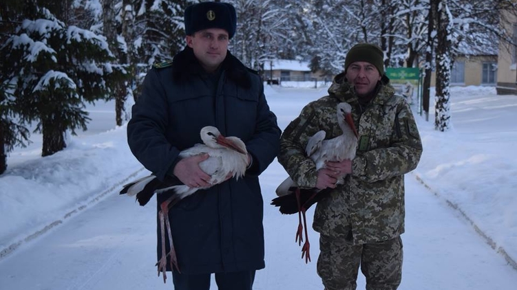 Пограничники в Черкассах спасли от холодной смерти двух аистов