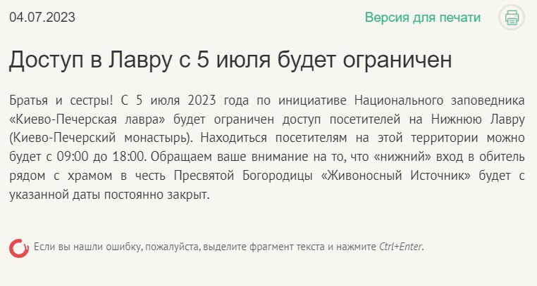 Доступ посетителей на территорию Нижней Лавры с 5 июля 2023 года будет ограничен по инициативе Национального заповедника "Киево-Печерская лавра".