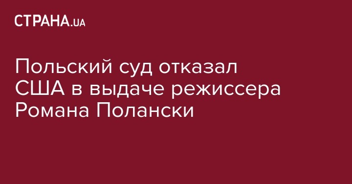 Напомним, в мае власти Польши возобновили процедуру экстрадиции знаменитого кинорежиссера Романа Полански в США, чтобы он предстал перед судом по делу 1977 года об изнасиловании.