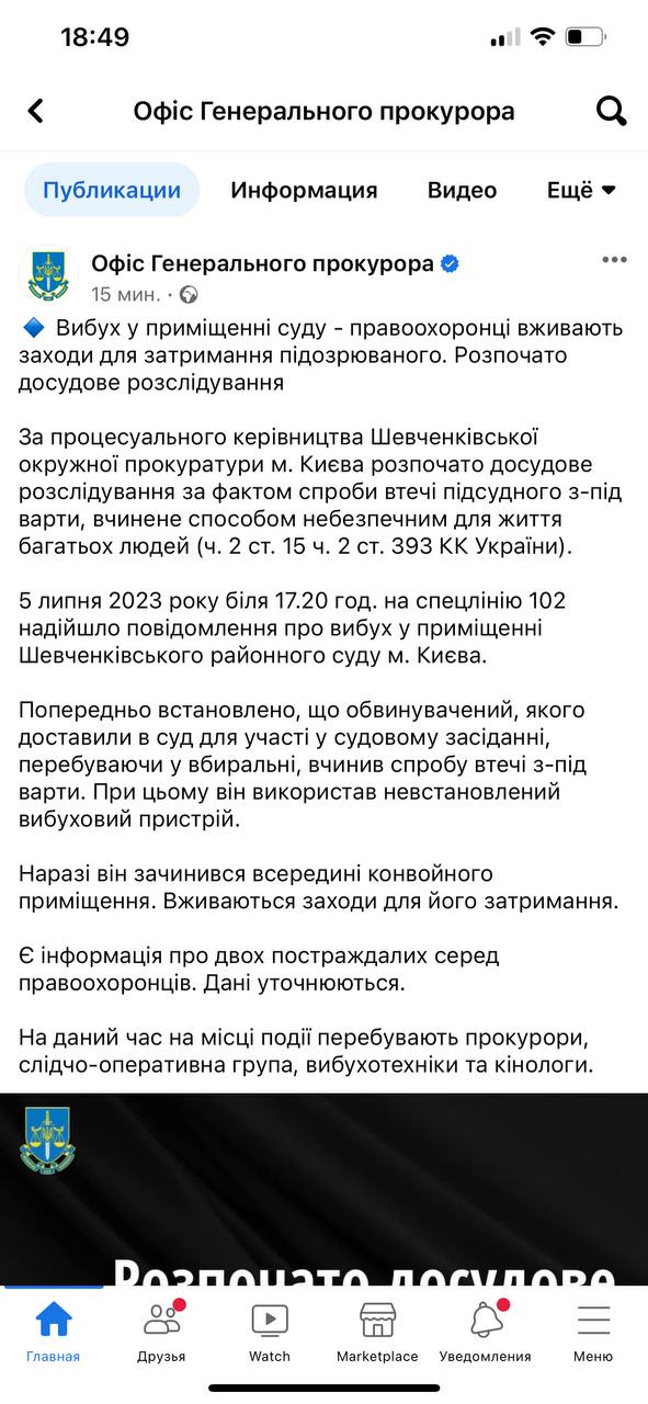 17.52 Местные паблики сообщают о взрыве и перестрелке в одном из судов Киева.