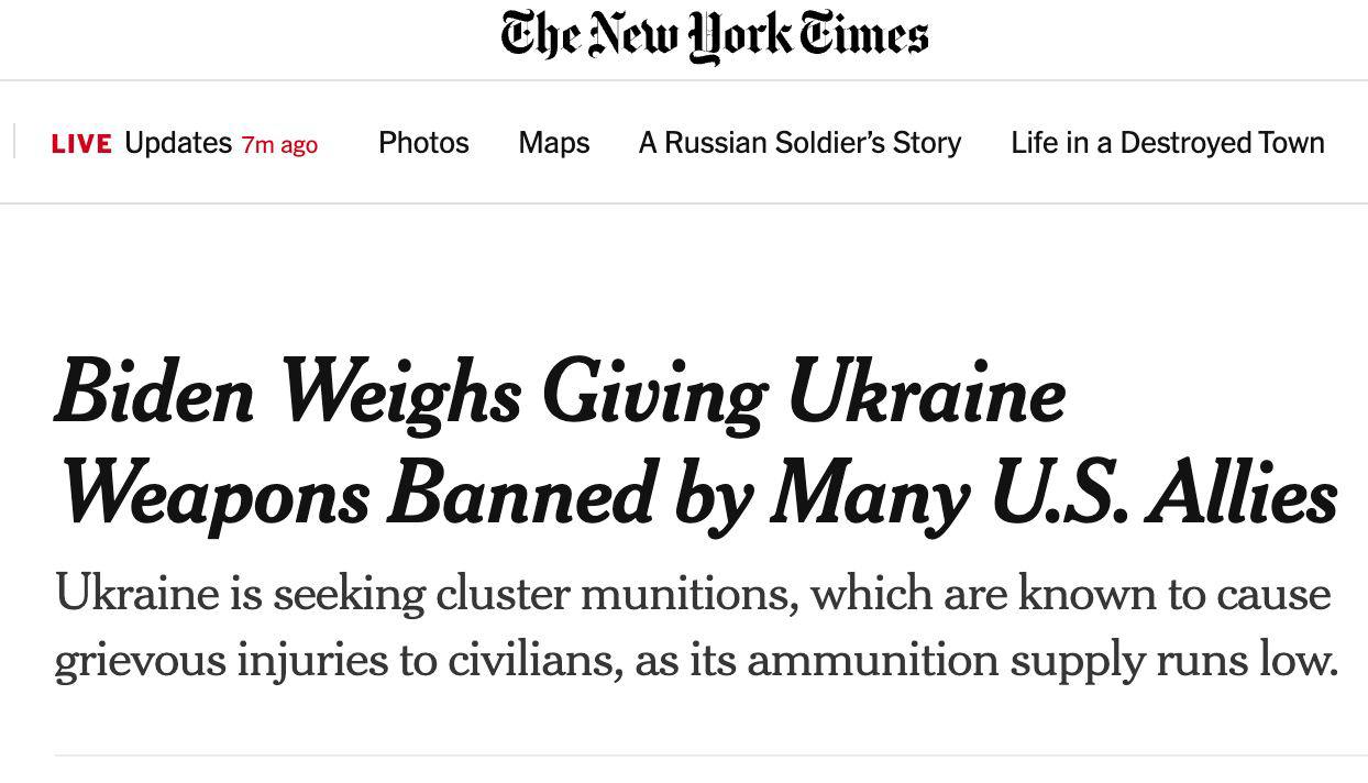 23.16 Решение США передать Украине кассетные боеприпасы было принято, потому что у нее заканчивались обычные снаряды.