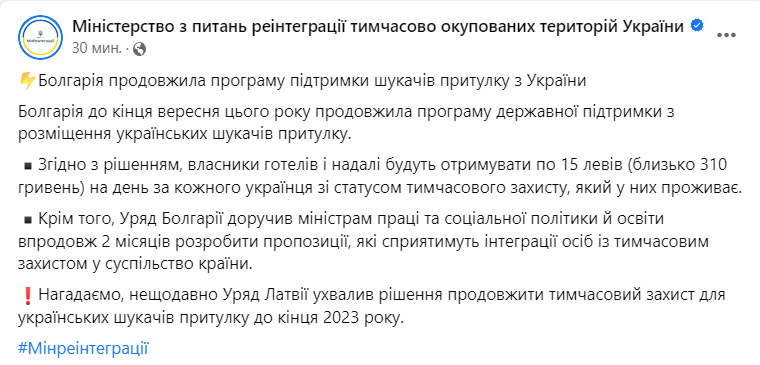 По программе владельцы гостиниц и дальше будут получать по 15 левов (около 310 гривен) в день за каждого украинца со статусом временной защиты, который у них проживает.