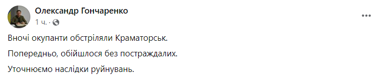 Сегодня ночью российские военные обстреляли Краматорск Донецкой области.
