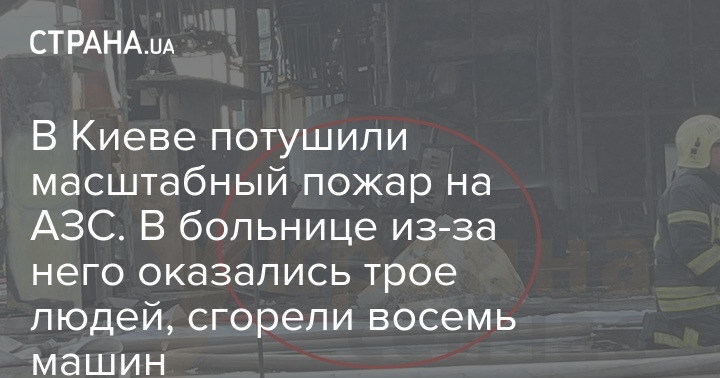 В Киеве потушили масштабный пожар на АЗС. В больнице из-за него оказались трое людей, сгорели восемь машин