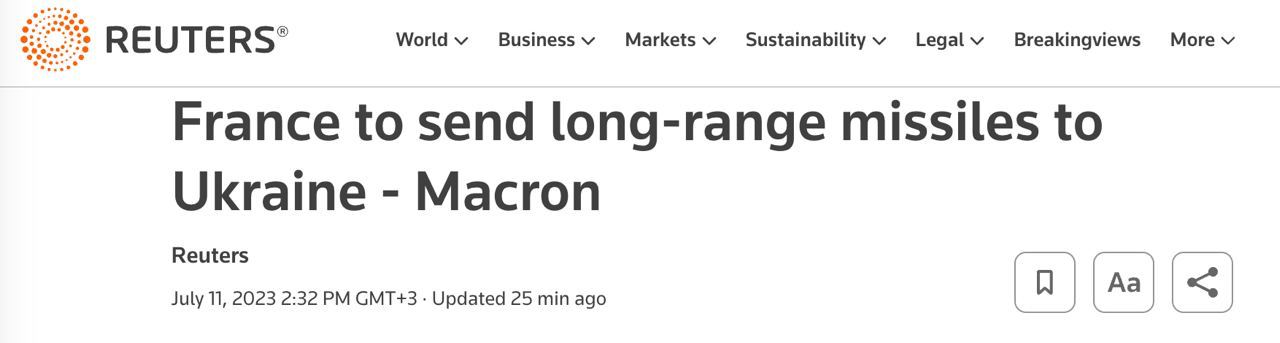 Франция передаст Украине дальнобойные ракеты для наступления - Макрон
