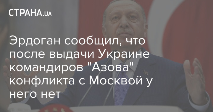 Президент Турции Реджеп Эрдоган сообщил, что конфликта с Москвой из-за выдачи Украине командиров "Азова" у него нет.