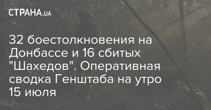 32 боестолкновения на Донбассе и 16 сбитых "Шахедов". Оперативная сводка Генштаба на утро 15 июля