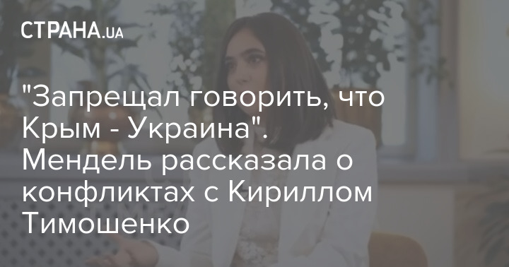 Бывший пресс-секретарь президента Владимира Зеленского Юлия Мендель заявила, что бывший заместитель главы Офиса президента Кирилл Тимошенко в 2019 году запрещал говорить, что Крым - это Украина.