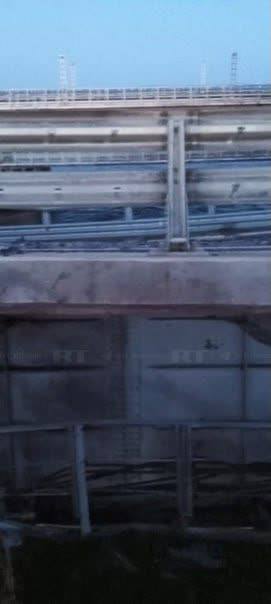 8:13 Первые детальные фото повреждений на Крымском мосту после взрыва.