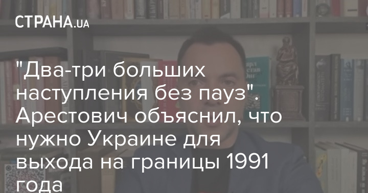 Чтобы Украине выйти на границы 1991 года, необходимо провести 2-3 больших контрнаступления, желательно без пауз, считает бывший советник Офиса президента Алексей Арестович.