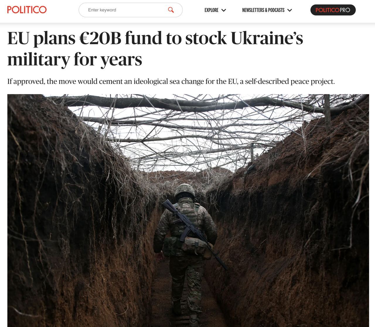 Евросоюз может создать фонд на 20 млрд евро для компенсации расходов на поставки вооружений ВСУ - Politico