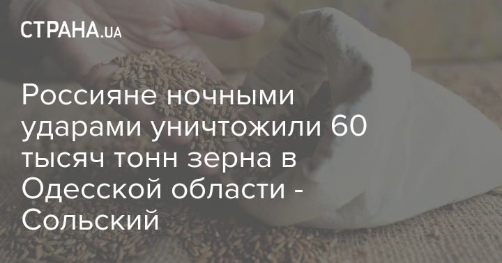 Министр аграрной политики Николай Сольский заявил, что ночной атакой Россия уничтожила 60 тысяч тонн зерна в порту Черноморска Одесской области.