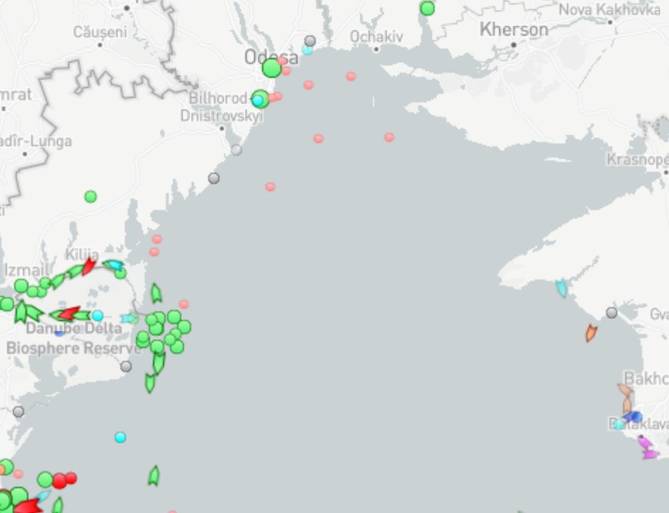 В порты Южного, Черноморска, Измаила и Рени также, по данным сервиса MarineTraffic никто не следует.