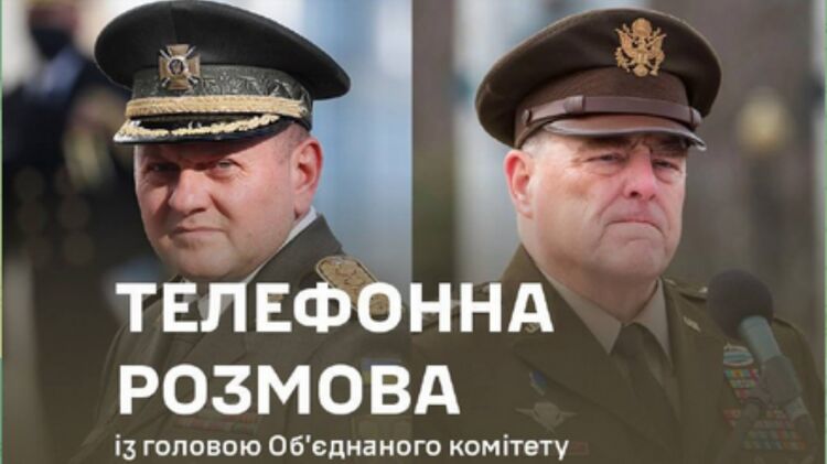 Главнокомандующий Вооружённых сил Украины Валерий Залужный провёл телефонный разговор с главой Объединенного комитета начальников штабов США генералом Марком Милли.