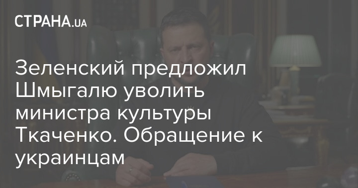 Владимир Зеленский в своём вечернем обращении к украинцам предложил премьеру  страны Денису Шмыгалю рассмотреть вопрос о замене главы Минкульта Александра Ткаченко.