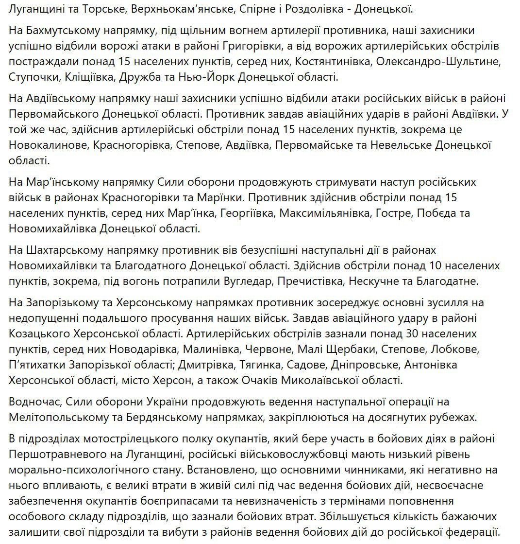 18:38 Вечерняя сводка украинского Генштаба.