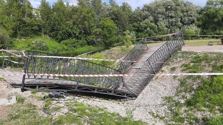 В городе Луга Ленинградской области России обрушился пешеходный мост с людьми. Один человек погиб.